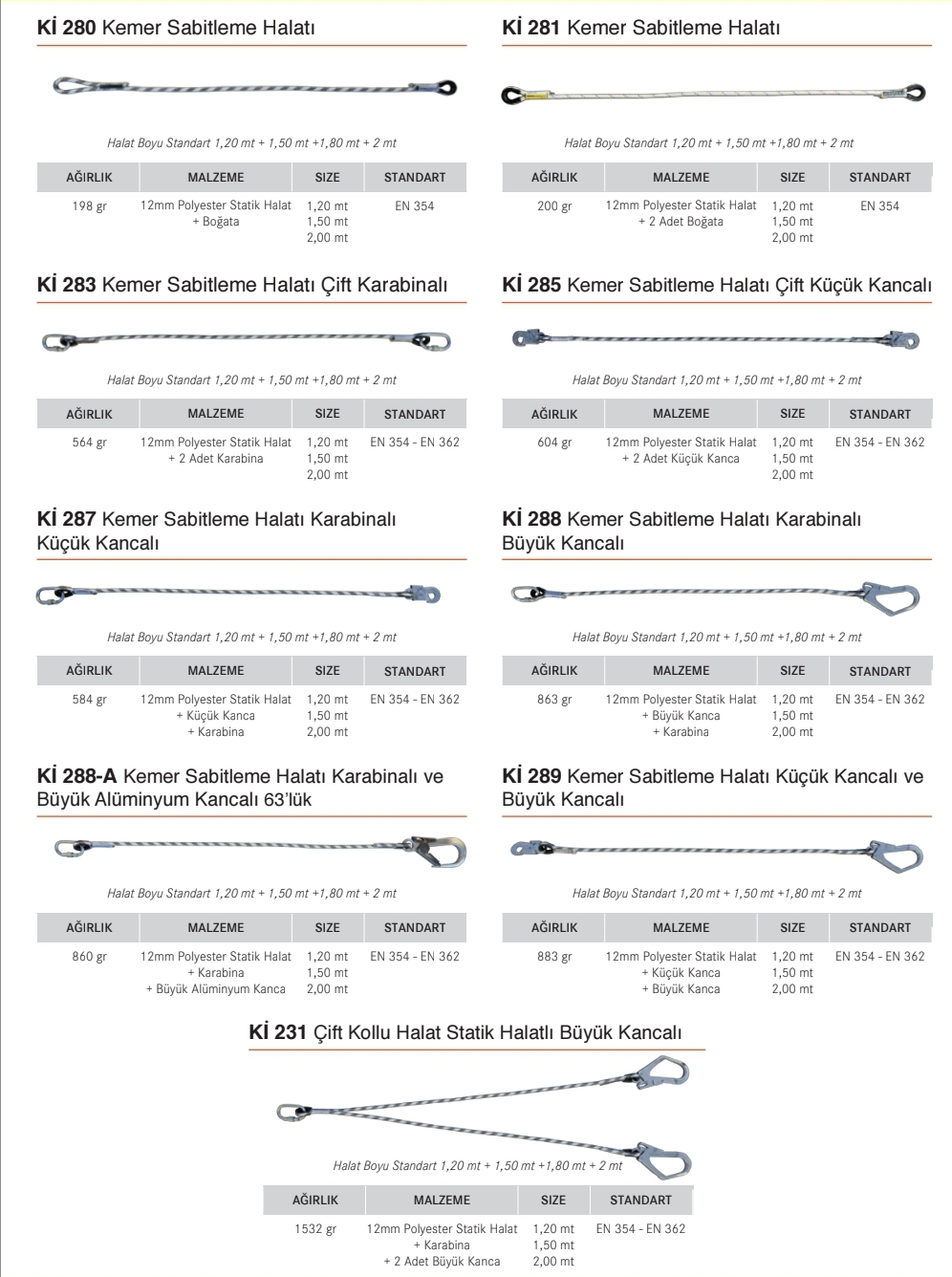 Karam Kİ231 Çift Kollu Statik Halatlı Büyük Kancalı Lanyard, CE, EN 354, EN 362