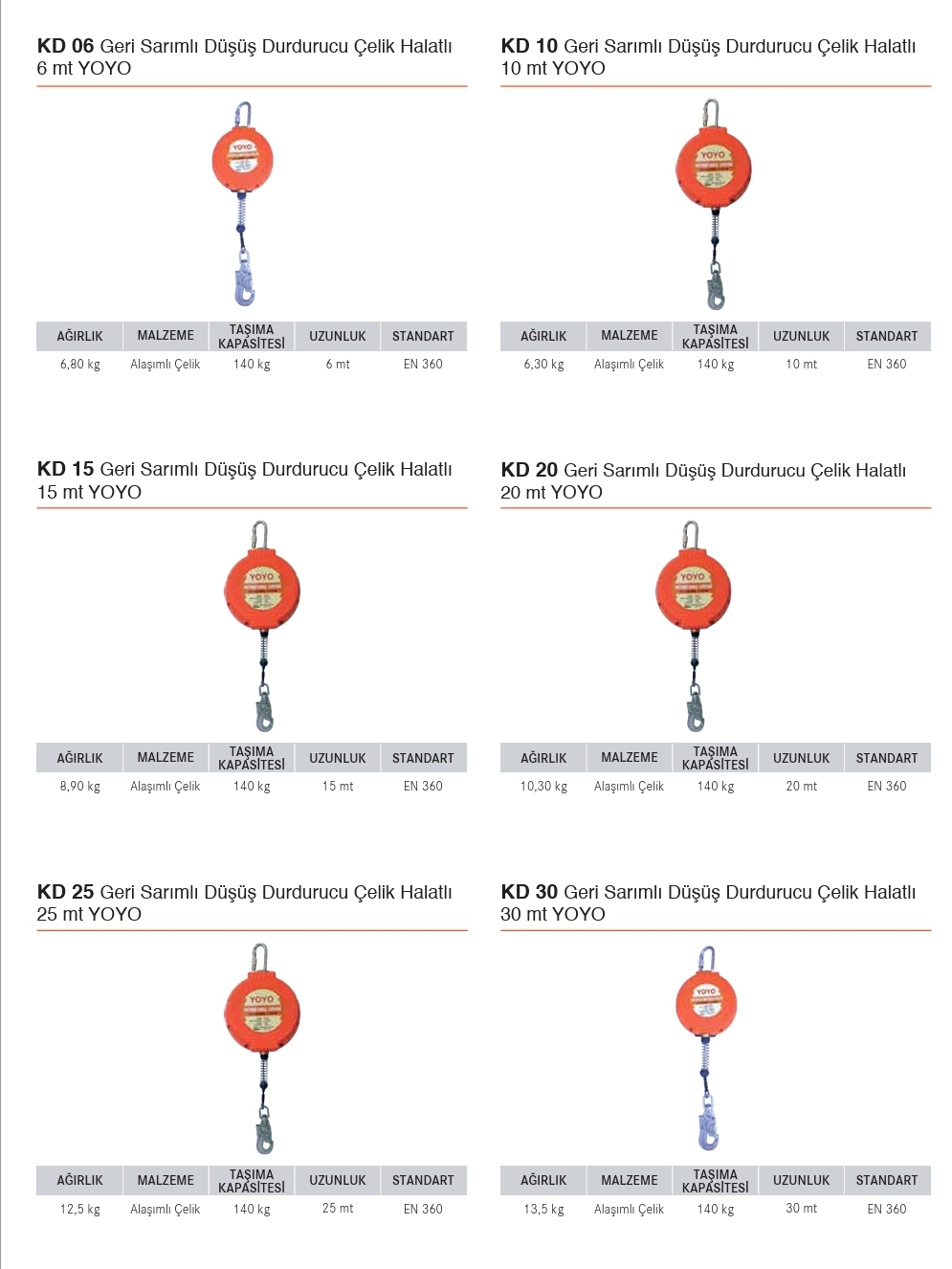 Karam KD20 Geri Sarımlı Düşüş Durdurucu 20 mt. (YOYO), CE, EN 360