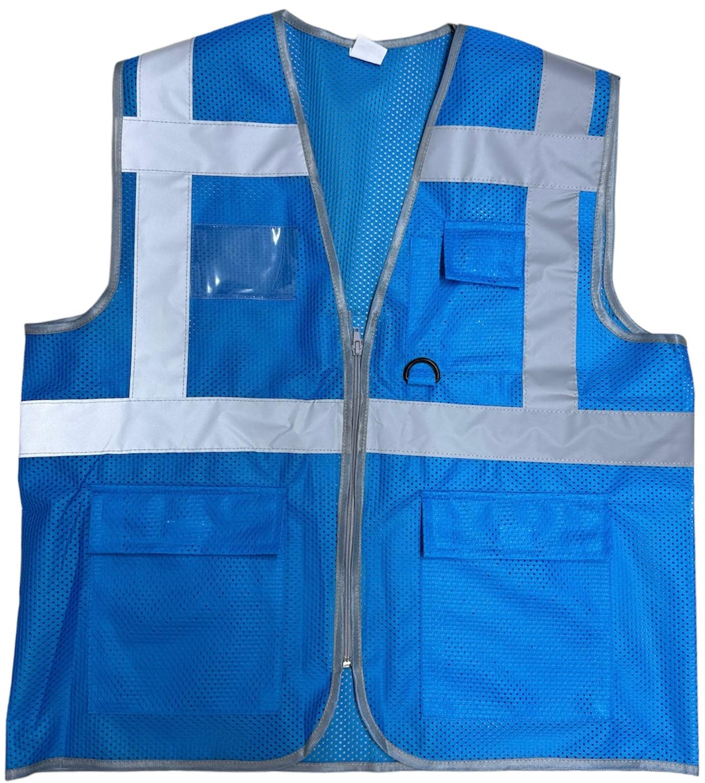 Mavi Renkli Reflektörlü Fileli Cepli Mühendis Yeleği